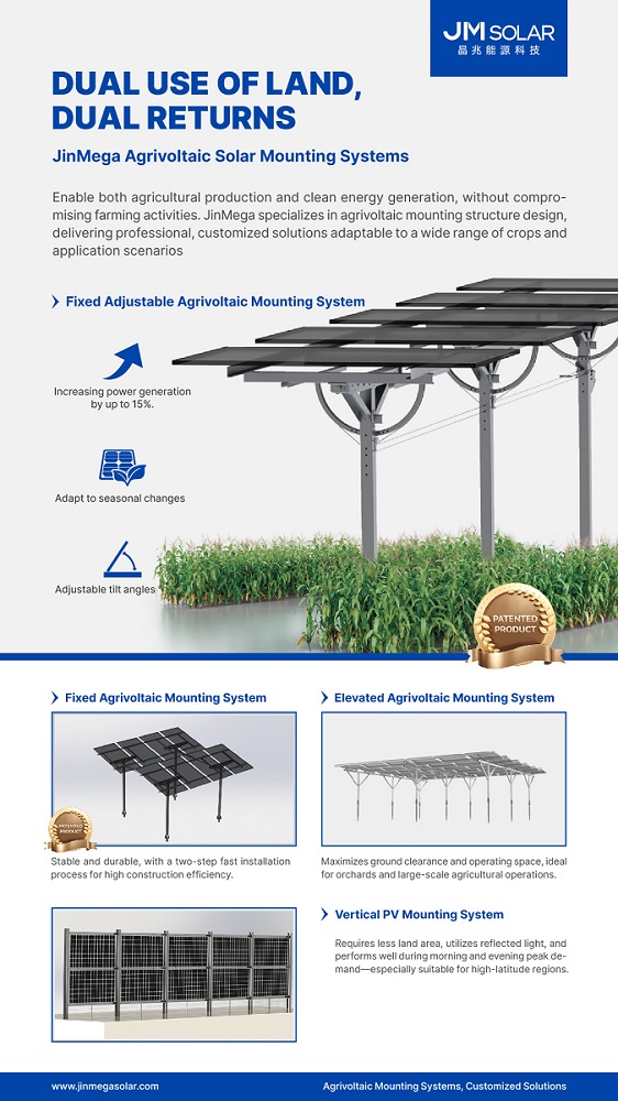 La energía limpia y la agricultura pueden crecer juntas. Las soluciones de montaje agrovoltaico de JinMega están diseñadas para fomentar la generación solar estable, preservando al mismo tiempo la producción agrícola y creando un valor dual a largo plazo para el uso de la tierra.