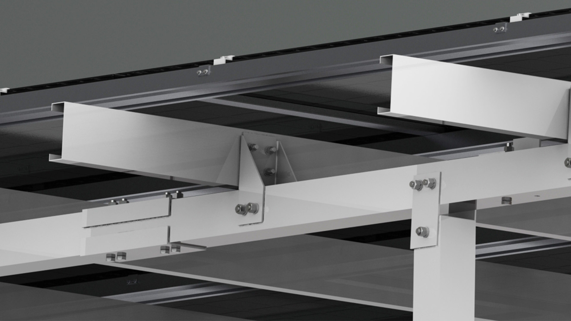 Sistemas de montaje solar para cocheras fotovoltaicas de aluminio.